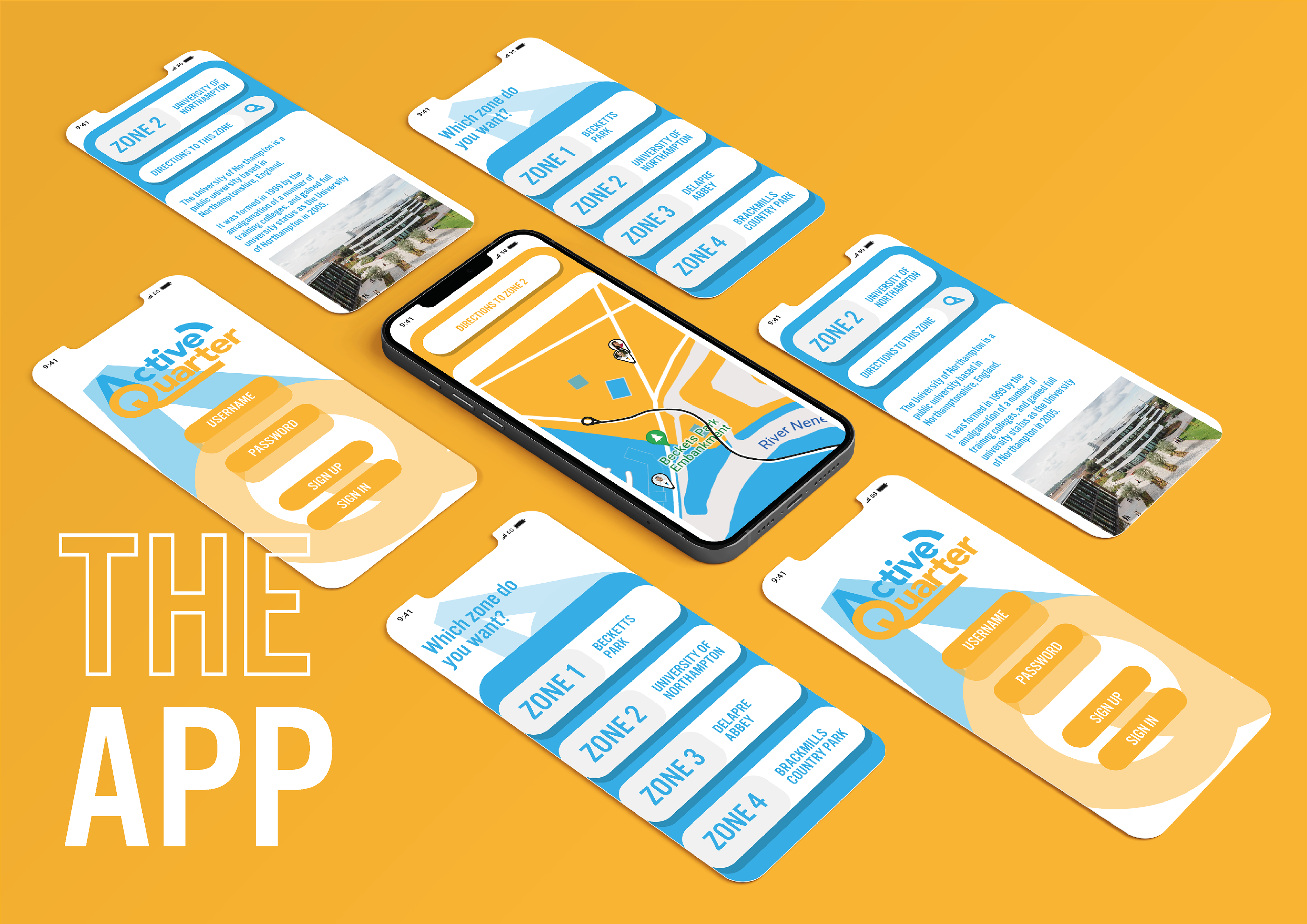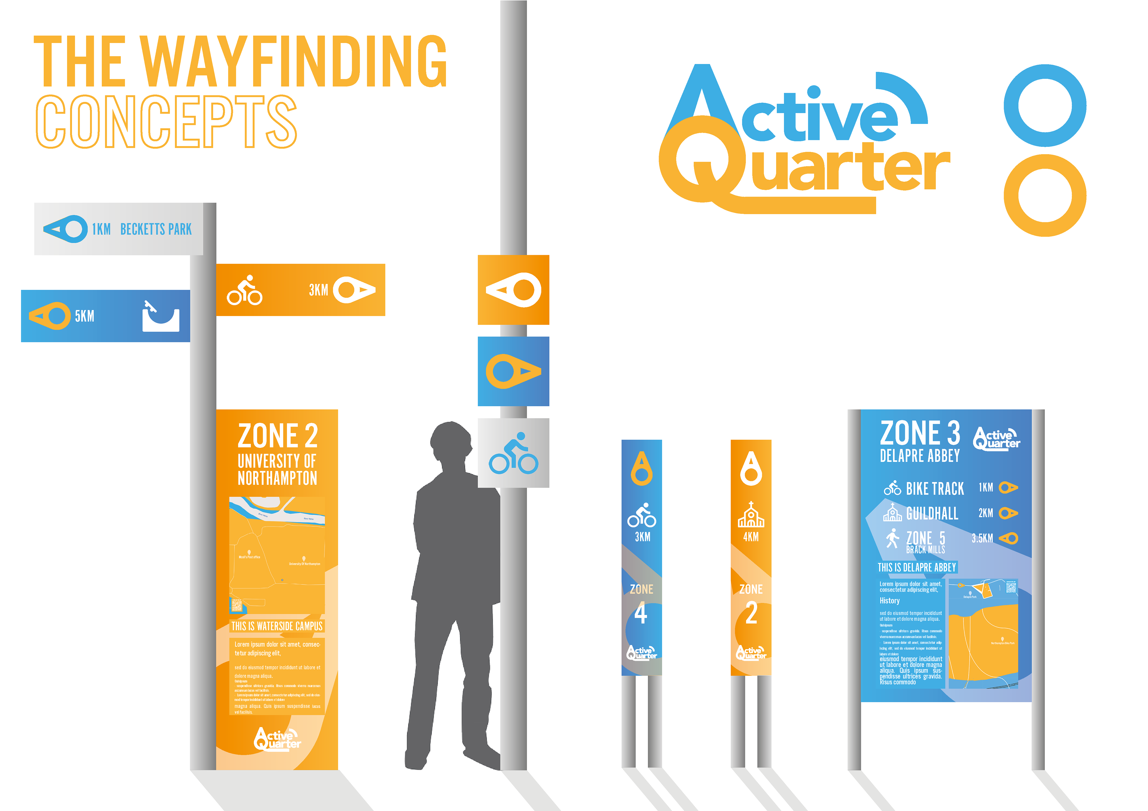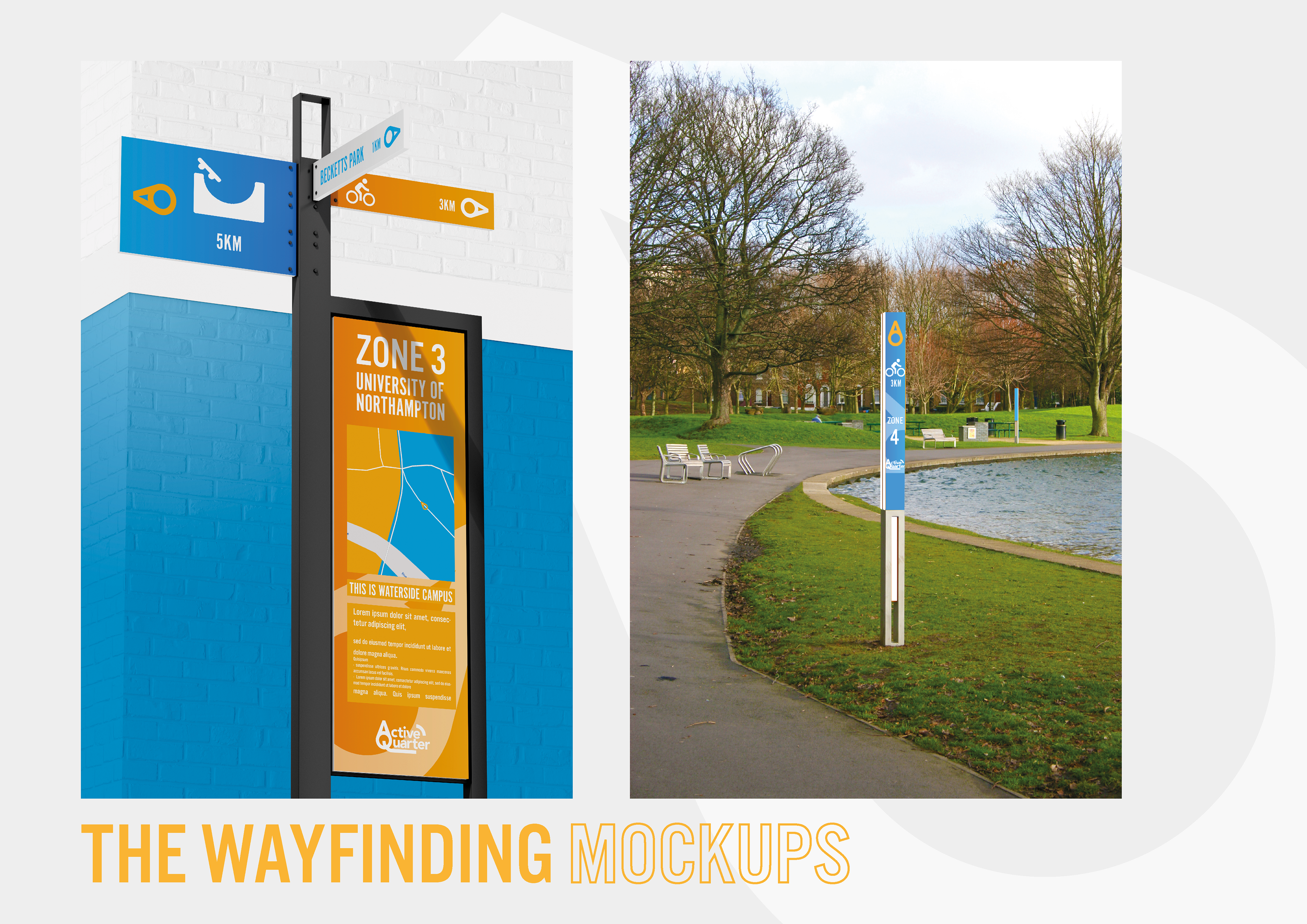 The University of Northampton approached us with a projects to rebrand and design wayfinding for several areas around Northampton that make up a region called the active quarter